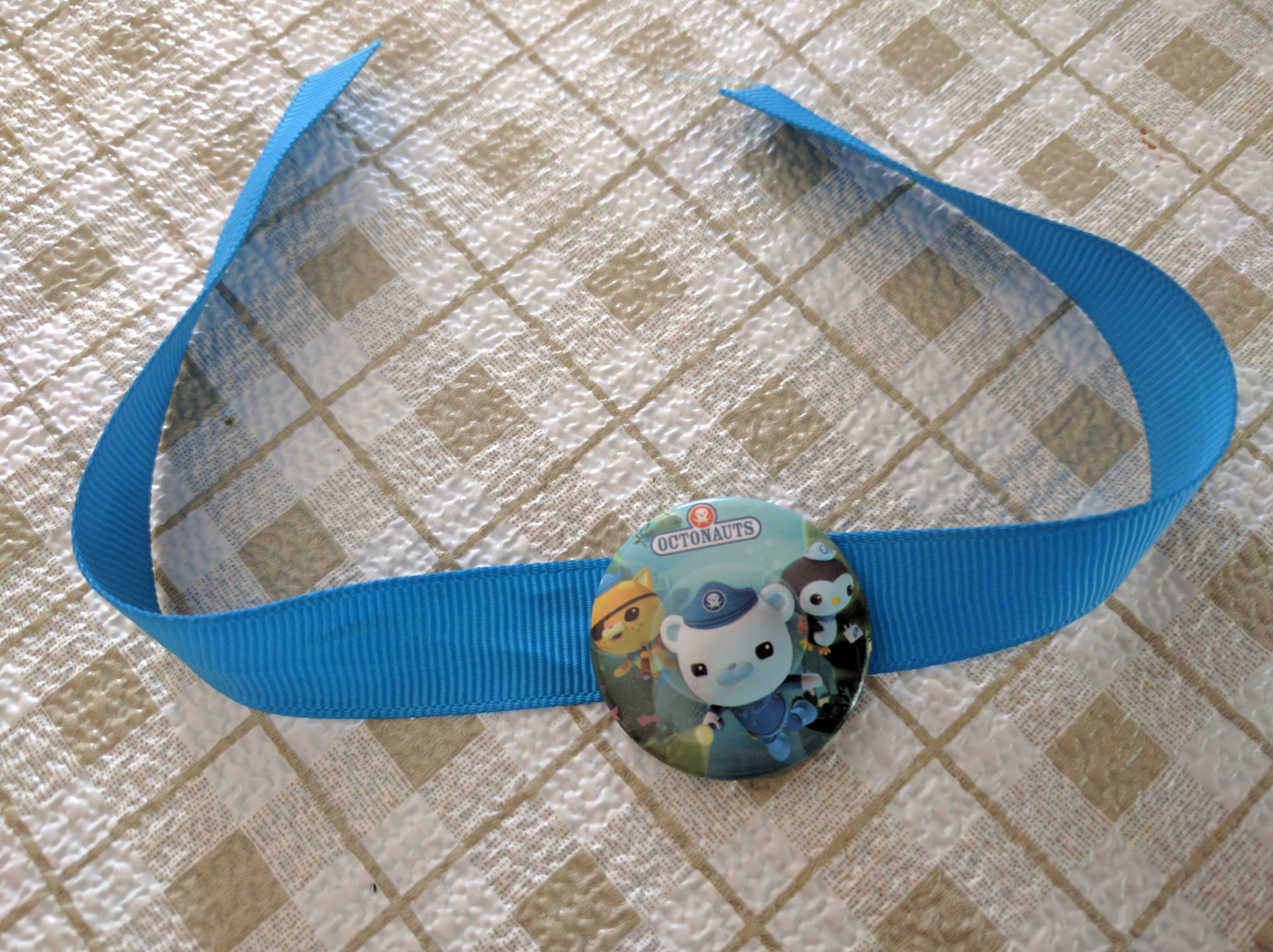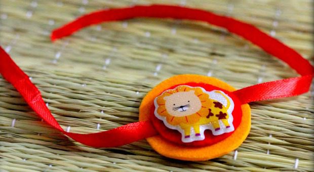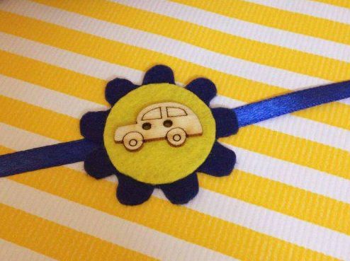 Rohan really loves The Octonauts, so we used some badges that we had on hand and pinned them to a thick ribbon to make him his Octonauts Rakhi. He was thrilled beyong imagination! You could also print mini Octonauts figures and stick them to cardboard or felt.